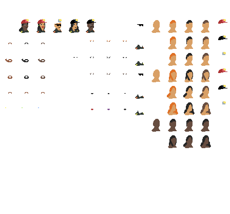 1. employee sprite generator - so this is jsut random parts to put together some employees, i worked in the coal mining field so the uniforms / hard hats are based from that field.